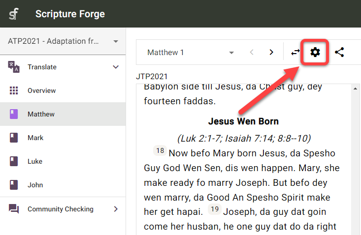 Haga clic en el icono del menú Scripture Forge: