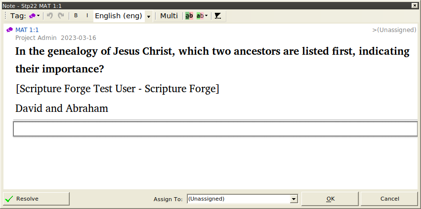 Sync the project so answers show up as notes in Paratext