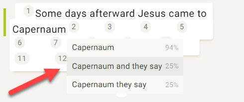 When Scripture Forge shows you translation suggestions, you can use the Up and Down arrow keys to highlight the suggestion that you want.
